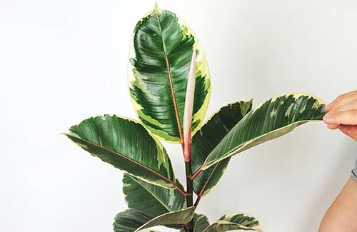 Eigenlijk is deze binnenboom een Ficus. Ze heeft grote donkergroene bladeren en hoe groener hoe beter, nietwaar? Ze kan rustig in het volle licht staan, maar een beetje minder vindt ze ook niet erg. Als haar bladeren steeds lichter worden, dan krijgt ze te veel licht en is het beter haar te verplaatsen naar een donkerder plekje. Eén keer in de week een klein beetje water is voldoende.