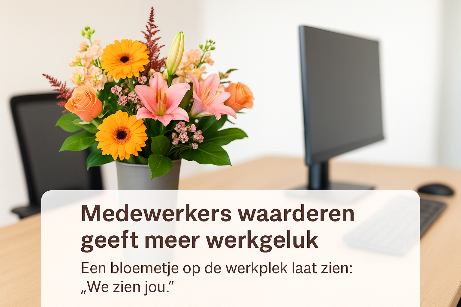 Een verjaardagscadeau of een mooi boeket bloemen op de werkplek heeft meer effect dan je denkt. Bloemen zorgen voor kleur, levendigheid en een positieve sfeer in de werkomgeving. Medewerkers ervaren zo’n gebaar niet alleen als een feestelijk moment, maar ook als een teken dat hun aanwezigheid gewaardeerd wordt.